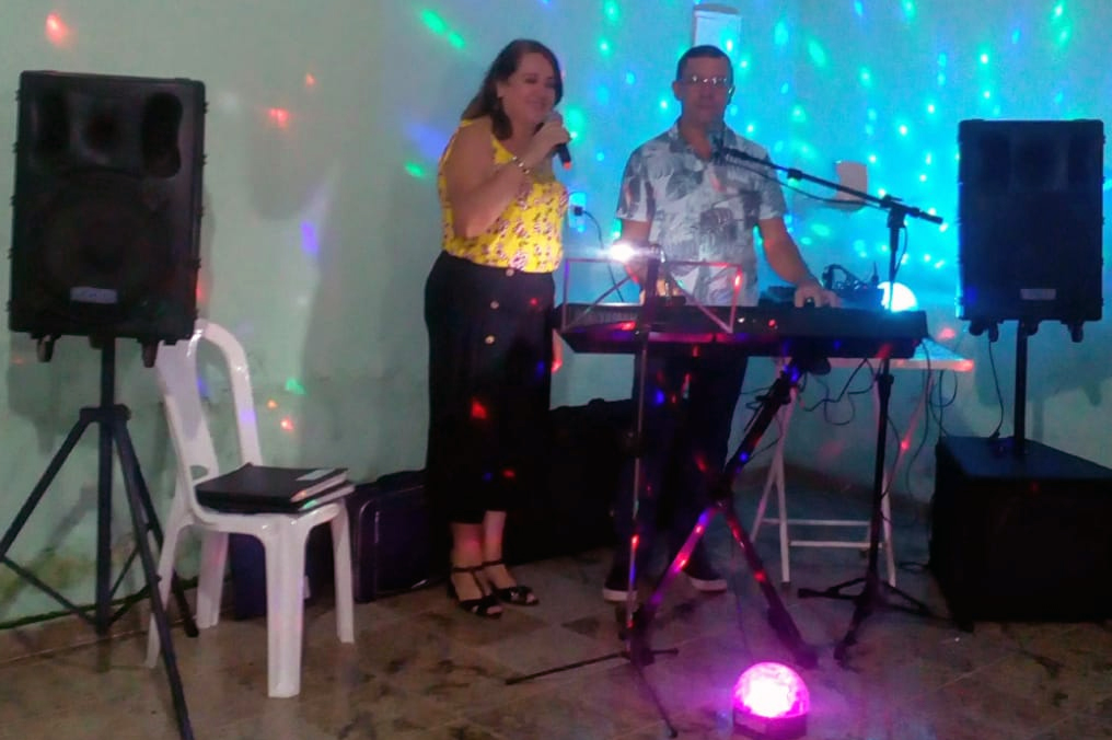 Dupla Aloísio (teclado e voz) & Estela (voz) Cidade Itaboraí, bairro Quissamã,