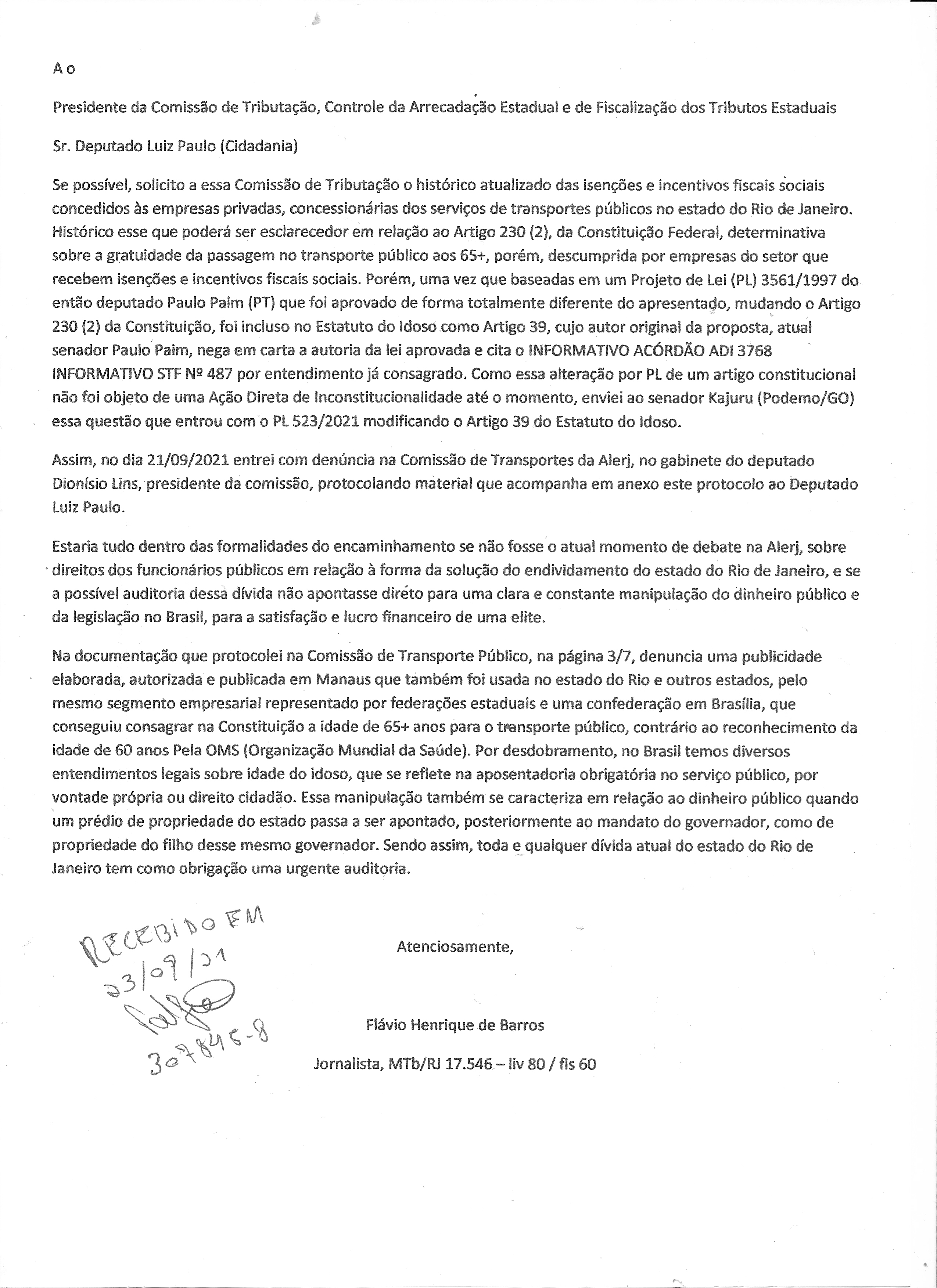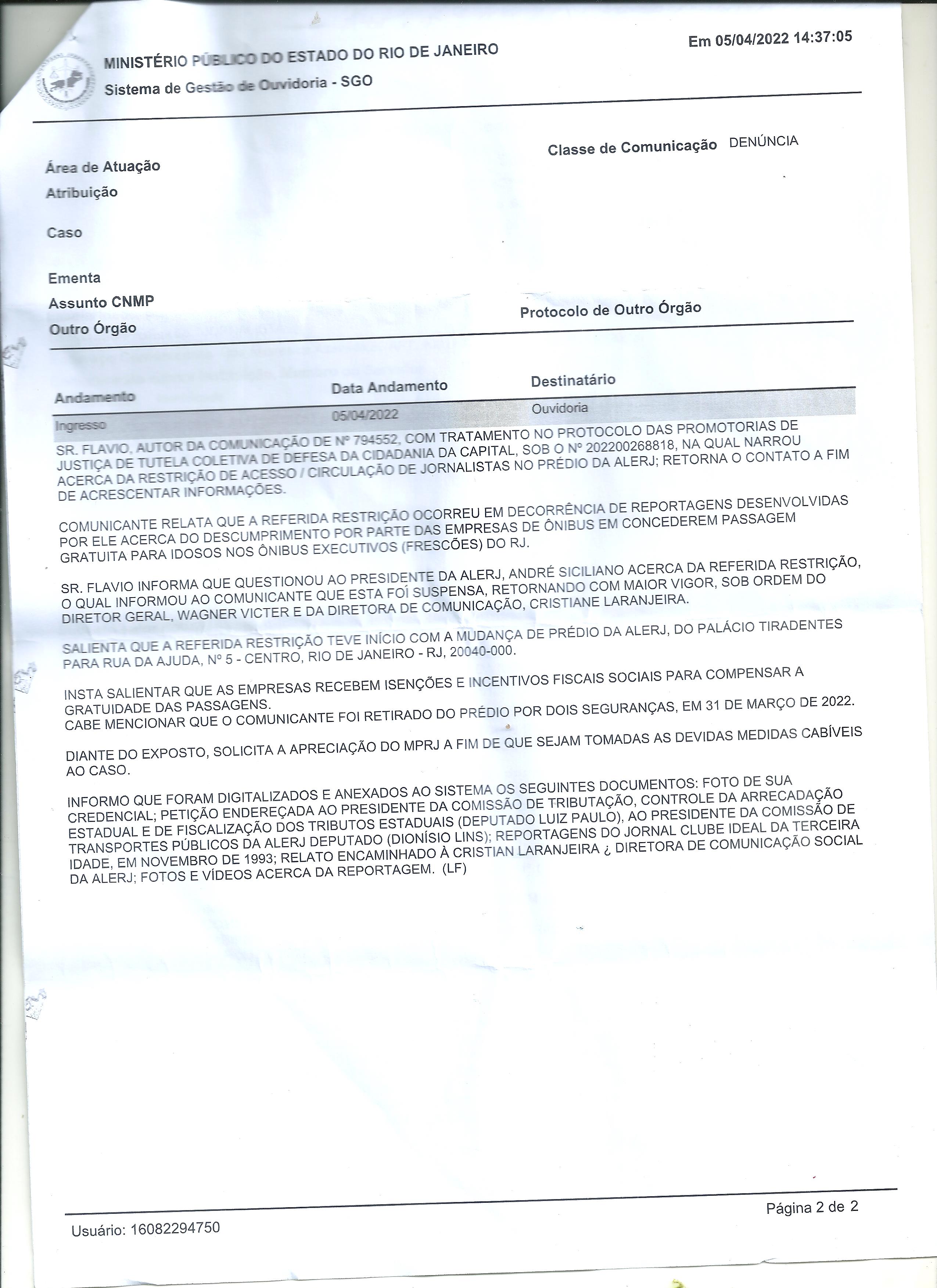 Jornalista denuncia perseguição na Alerj por defender direitos do idoso 65+ e liberdade de imprensa